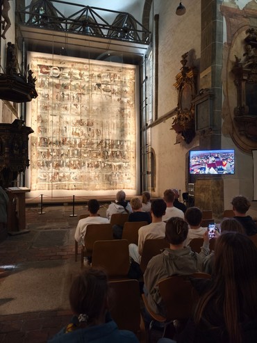 Abends haben wir das Erlebte verarbeitet. Wir haben dem Beispiel der mittelalterlichen Bilderbibeln folgend eigene Bildgeschichten erstellt, haben uns über die Berg- und Tal-Momente unseres Lebens ausgetauscht, Lieder gesungen, Andacht gefeiert, gebetet und diskutiert.
