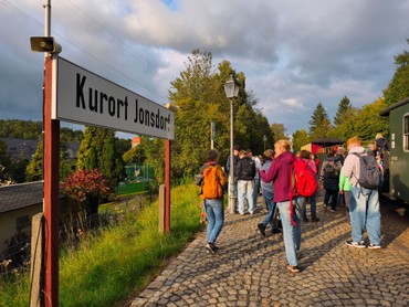 Am Montag feierten wir vor der Abreise in der Jonsdorfer Kirche unter den berühmten böhmischen Lüstern Gottesdienst, beteten noch einmal Psalm 121 und erinnerten an Mose, der auf einem Berg seine Schuhe auszog, denn der Boden, auf dem er stand, wurde durch die Begegnung mit Gott zu einem Heiligen Ort. Anschließend stiegen wir abermals in die Kleinbahn und fuhren mit Dampf nach Zittau ab. Die tolle Zeit in besonderer Gemeinschaft wird uns noch lange in Erinnerung bleiben.