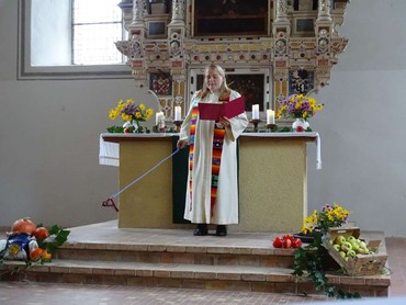 Am Erntedanksonntag haben wir in Hohenwalde schon zum 3. Mal Gottesdienst mit Haus- und Kuscheltieren gefeiert. Es waren einige Hunde, Kaninchen, sogar eine Katze und zwei Schildkröten dabei. Begleitet wurden die Tiere von Kindern und Erwachsenen, die miteinander die Schöpfung und das Leben gefeiert und Gott gedankt haben für die Freundschaft zwischen Mensch und Tier.