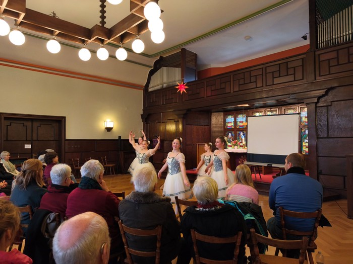 Natürlich hat Jost Truthmann an der Orgel für die richtige Musik gesorgt und uns die Filmmusik des bekannten DEFA-Films vorgespielt. Aber dass die Balletttänzerinnen der Tanzschule Viva Danza dann auch noch so himmlisch und zart für uns getanzt haben, war dann doch eine Überraschung.
