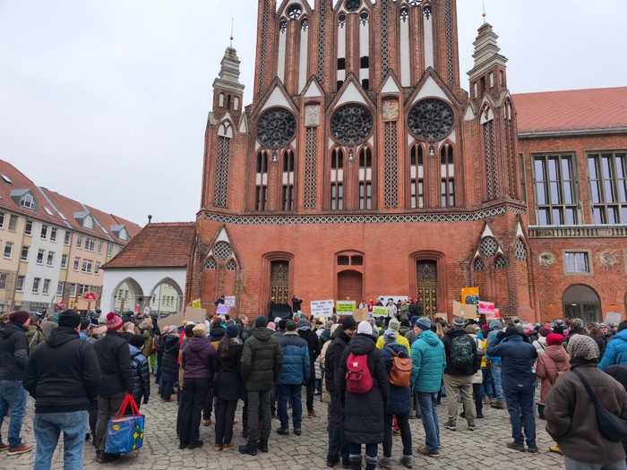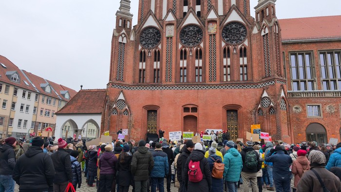 Von den geplanten Kürzungen im Kulturbereich, die die Stadtverordneten beschließen sollten, war auch unsere Musikschule betroffen. Grund genug auch für Mitglieder unserer Kirchengemeinde dagegen auf die Straße zu gehen. Dass es in unserer Stadt und aus unseren Kirchen so herrlich singt und klingt, ist auch der Musikschule zu verdanken. Wir sind angewiesen auf guten und bezahlbaren Instrumentalunterricht für Kinder und Erwachsene. Bei den Demonstrationen am 24.01. und 19.02. sprachen Pfarrerin Susanne Noack, Kirchenmusikdirektor Stephan Hardt und Reinhard Richter vom Förderverein St. Marien. Was für ein Glück, dass die Bemühungen sich gelohnt haben und die Kürzungen für dieses Jahr erstmal vom Tisch sind.