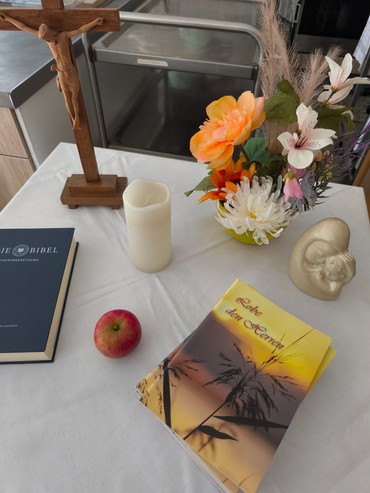 Im Haus Abendsonne in der Markendorfer Straße haben wir schon etwas vorfristig Erntedank gefeiert. Wir haben Gott für die Ernte danke gesagt, auch im Rückblick auf unser bewegtes Leben. Durch die Reihen ging eine kleine Schatzkiste und in ihr war nichts weiter als ein Apfelkern. Die Senior*innen haben den Kern sofort erkannt. Was für ein Wunder schenkt uns Gott, dass aus einem kleinen Kern ein gewaltiger Baum wachsen und Früchte tragen kann. Zum Schluss haben wir das alte Kinderlied vom kleinen Apfel gesungen und selbst ein bisschen mitgeträumt "vom schönen Weihnachtsbaum".