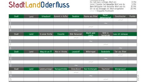 Im Redaktions-Team ist eine Special Edition des beliebten Klassikers Stadt-Land-Fluss entstanden. Sie ist im Gemeindebrief für die Sommermonate abgedruckt.