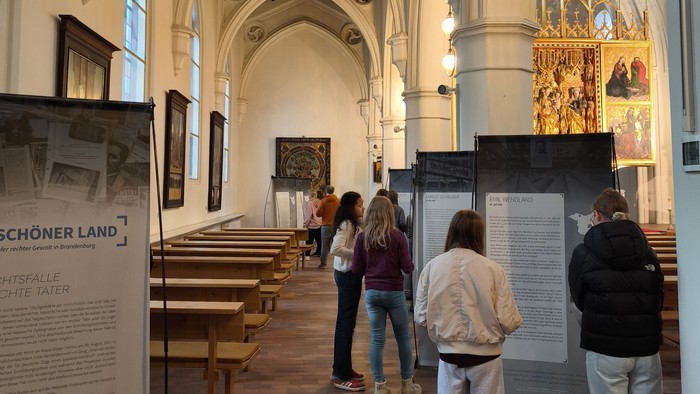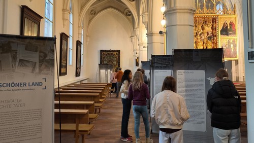 Im Rahmen des Konfikurses haben unsere Jugendlichen kurz vor den Herbstferien die Ausstellung "Kein schöner Land - Todesopfer rechter Gewalt in Brandenburg seit 1990" des Vereins Opferperspektive besucht. Wir waren erschüttert über das hohe Maß an Gewalt und Empathielosigkeit und entsetzt darüber, dass manche Opfer bis heute nicht als Todesopfer rechter Gewalt anerkannt sind, dabei waren die Tatmotive fast immer Rassismus, Sozialdarwinismus oder der Hass auf politisch linke Menschen. Die Konfis haben die Tafeln genau studiert und Kerzen angezündet für die viel zu vielen Leute, die viel zu früh aus dem Leben gerissen wurden.