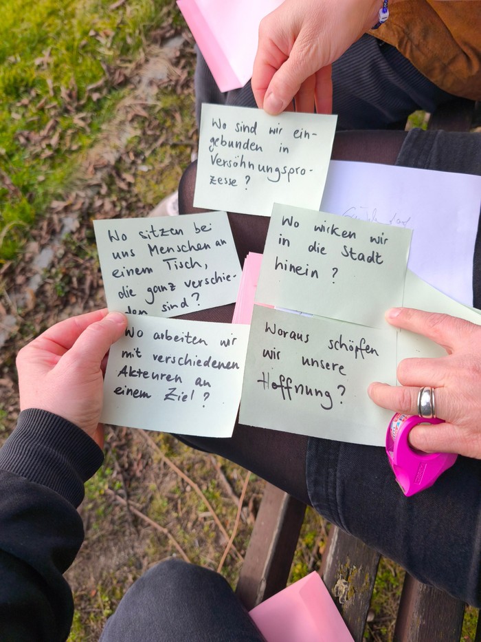 Beim Spaziergang am Nachmittag sind wir diesen Erkenntnissen nachgegangen und haben überlegt, wie wir sie für unsere Gemeinde nutzbar machen können. Kreisau hat in uns bewirkt, dass wir mit unseren Sorgen etwas Demut gewonnen haben gegenüber den Schwierigkeiten, vor denen Menschen zu anderen Zeiten standen.