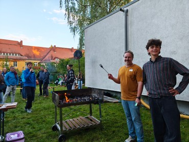 Die Junge Gemeinde hat rund 80 Leute im Garten des Gemeindehauses Kreuz mit Bratwürtschen, Brötchen und Getränken versorgt. Was für ein wunderbarer, bunter Haufen!