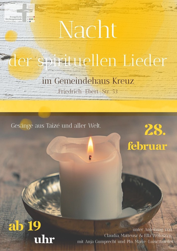 Die Nacht der Spirituellen Lieder mit Gesängen aus Taize und aller Welt lädt uns zum Singen, zur Gemeinschaft im gesungenen Gebet ein.