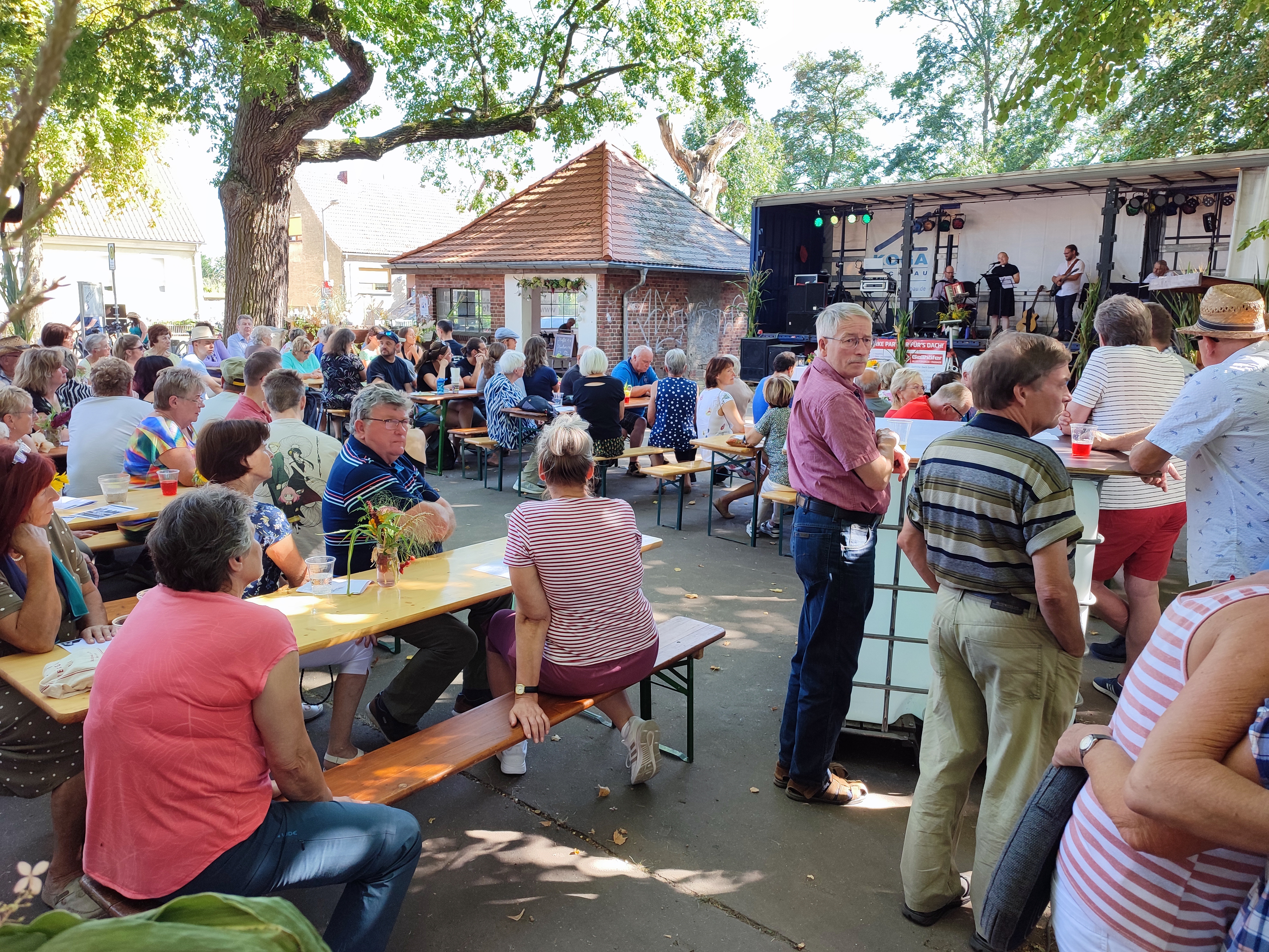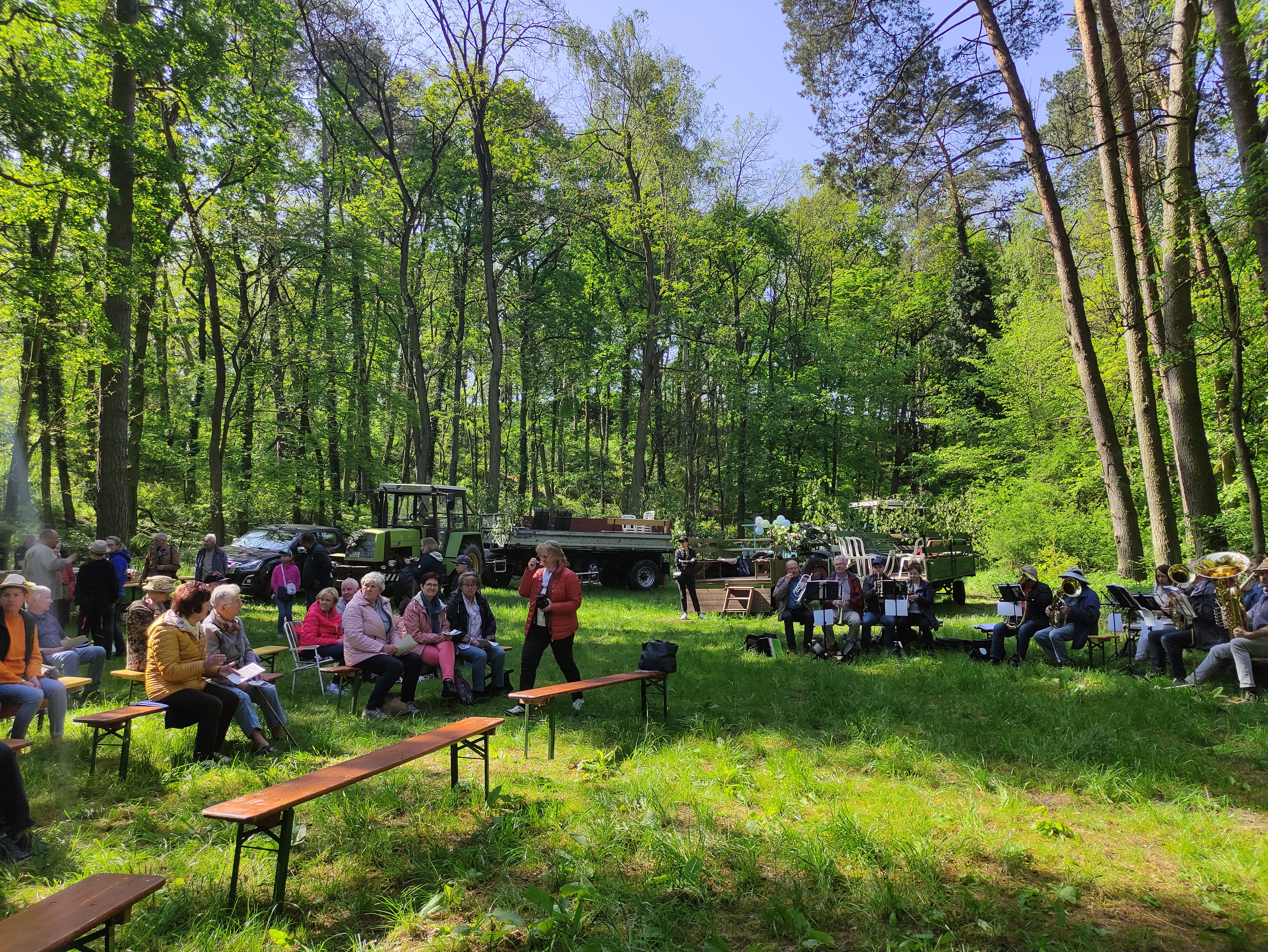 In Hohenwalde leben 450 Menschen. Ungefähr einhundert von ihnen sind evangelisch! Nun könnte man meinen, Hohenwalde ist ein ziemlich frommes Dorf. Und in gewisser Weise stimmt das auch: Unser Gemeindeleben ist so lebendig, wie in kaum einem anderen Ortsteil. Aber wer die Hohenwalder Christinnen und Christen hinter den Mauern ihrer schönen Kirche sucht, könnte sich irren. Bei gutem Wetter feiern wir nämlich lieber im Wald Gottesdienst oder mitten auf dem Dorfanger, bei Bier und Brause und Schlagermusik. Dann hebt die Pfarrerin den Blick in den Himmel und ruft "Er gehört zu mir, wie sein Name an der Tür" und die Gemeinde antwortet einstimmig: "Und ich weiß, er bleibt hier!"