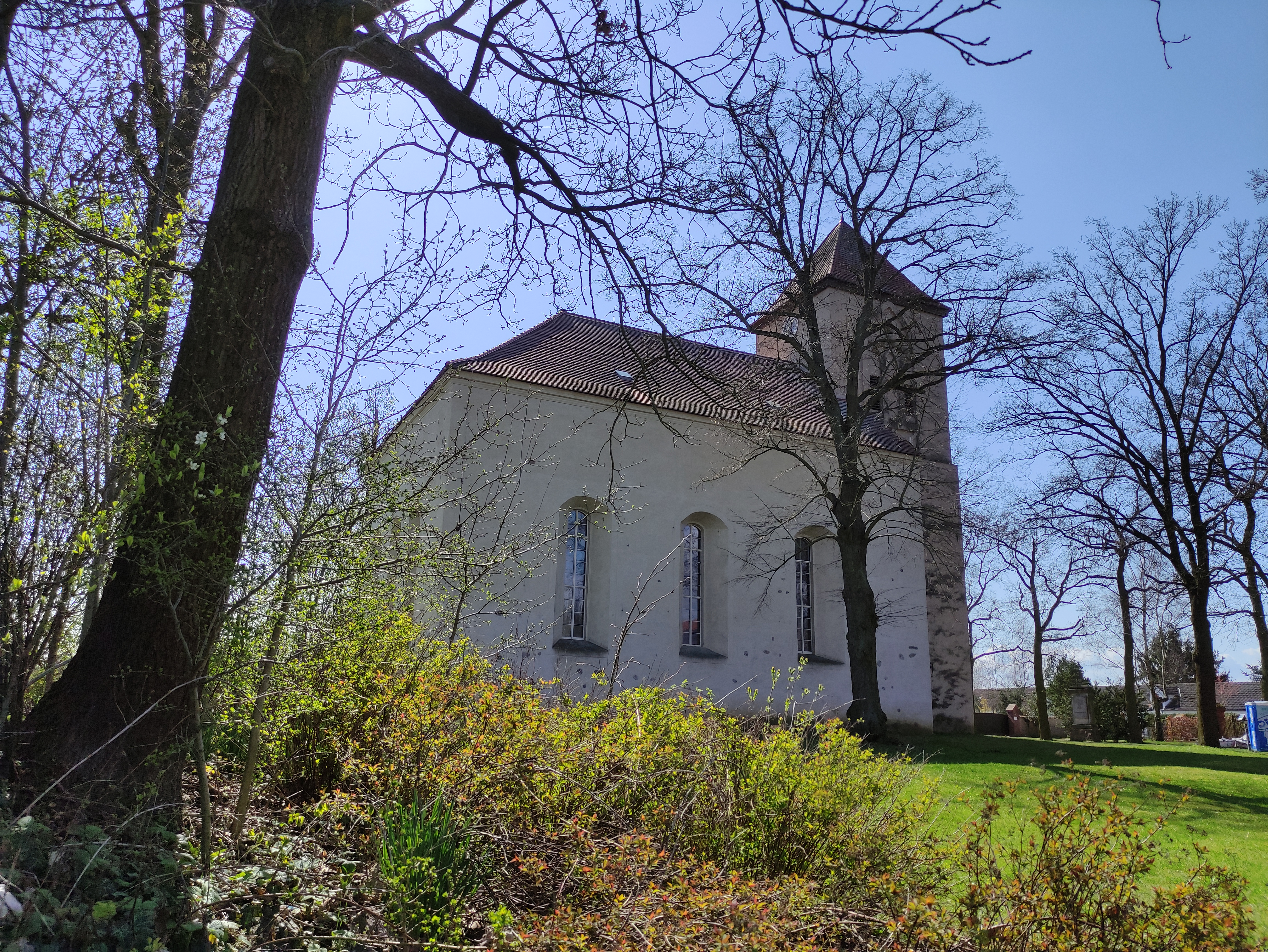 Die Kirche steht seit 1607 in der Ortsmitte und trotzt mit steingewordener Zuversicht den Stürmen der Geschichte. 1794 erhielt sie das aufgeputzte Maßwerk am Turmoberteil. 1869 wurde durch die Firma Wilhelm Sauer eine Orgel eingebaut, die bis heute erklingt, wenn auf ihr Konzerte gespielt werden, wir Konfirmationsjubiläen feiern oder zum Haustiergottesdienst den Kätzchen und Kaninchen ein schönes Lied vorsingen. 2024 und 2025 wurde sie umfangreich saniert. Es lohnt sich ein Blick hinein. Aber vor allem lohnt es sich, mitzufeiern, die freundlichen Menschen hier zu erleben und last but not least in der Gaststätte Müller einen Pfannkuchen zu essen oder auch zwei!